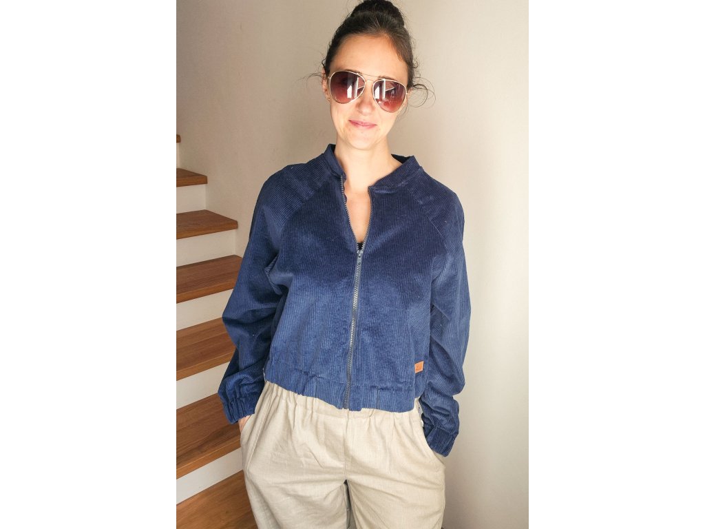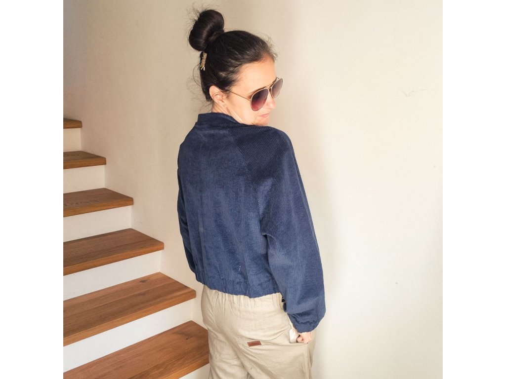 Stylová bunda z měkkého, pružného manšestru, který je příjemný na nošení a dobře drží tvar. Má pohodlný střih, zapínání na zip a delší rukávy. Díky pružnému pasu a volnějšímu řešení průramků se bunda přizpůsobí různým postavám, takže se skvěle hodí jako univerzální kousek pro velikosti 36–42.