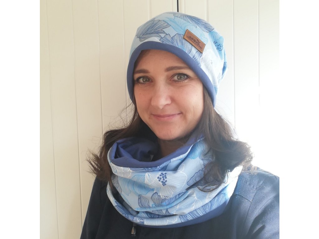 Dámská čepice Modré květiny