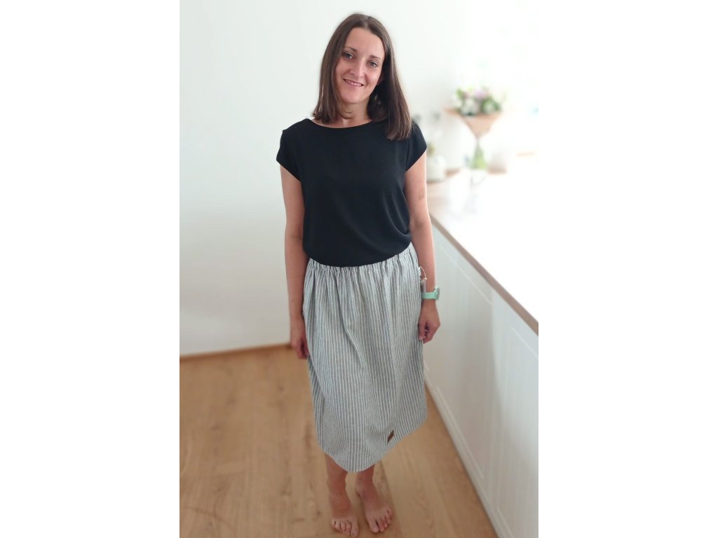 Dámská sukně ze lnu a viskózy, vzdušná a příjemně splývavá – ideální volba pro teplejší dny i pohodlné nošení po celý den. Díky délce lehce pod kolena působí ženským a zároveň ležérním dojmem. Kombinace viskózy a lnu spojuje to nejlepší z obou materiálů – viskóza dodává měkkost a splývavost, len zase prodyšnost, odolnost a přírodní charakter. Na sukni nechybí ani drobný, ale výrazný detail v podobě loga značky na designovém štítku, který dotváří její celkový vzhled.