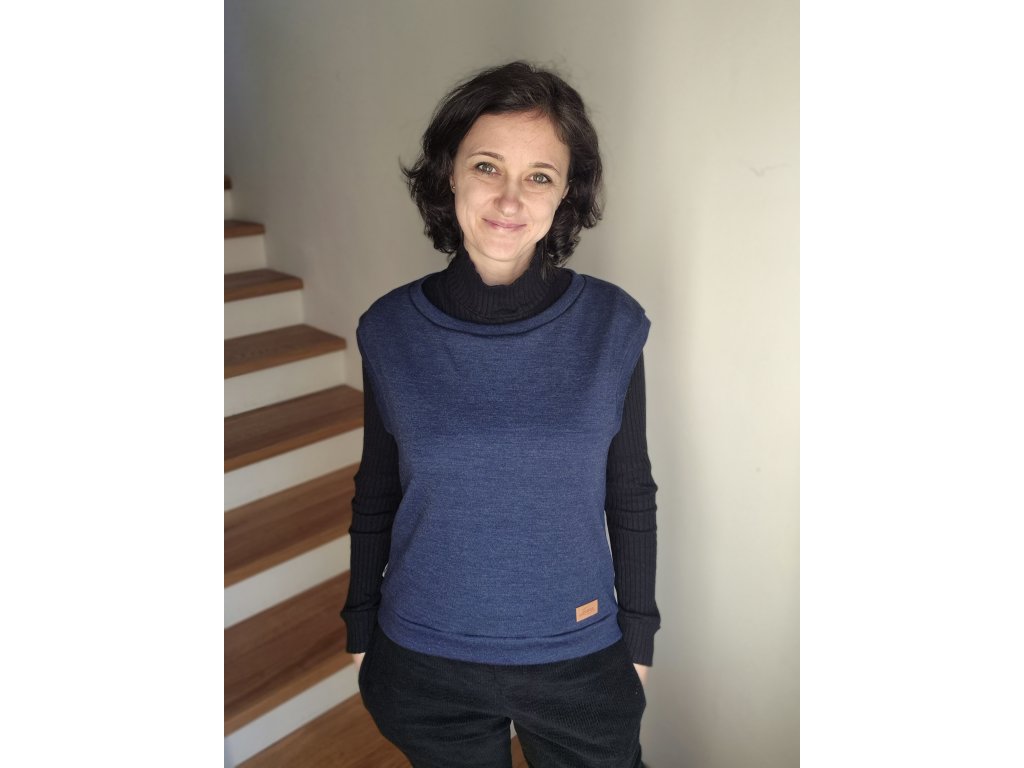 Jednoduchá vesta se snadno kombinuje s tričkem s dlouhým i krátkým rukávem, rolákem. Je ušitá z příjemného merino úpletu, který krásně zahřeje a nedráždí pokožku.