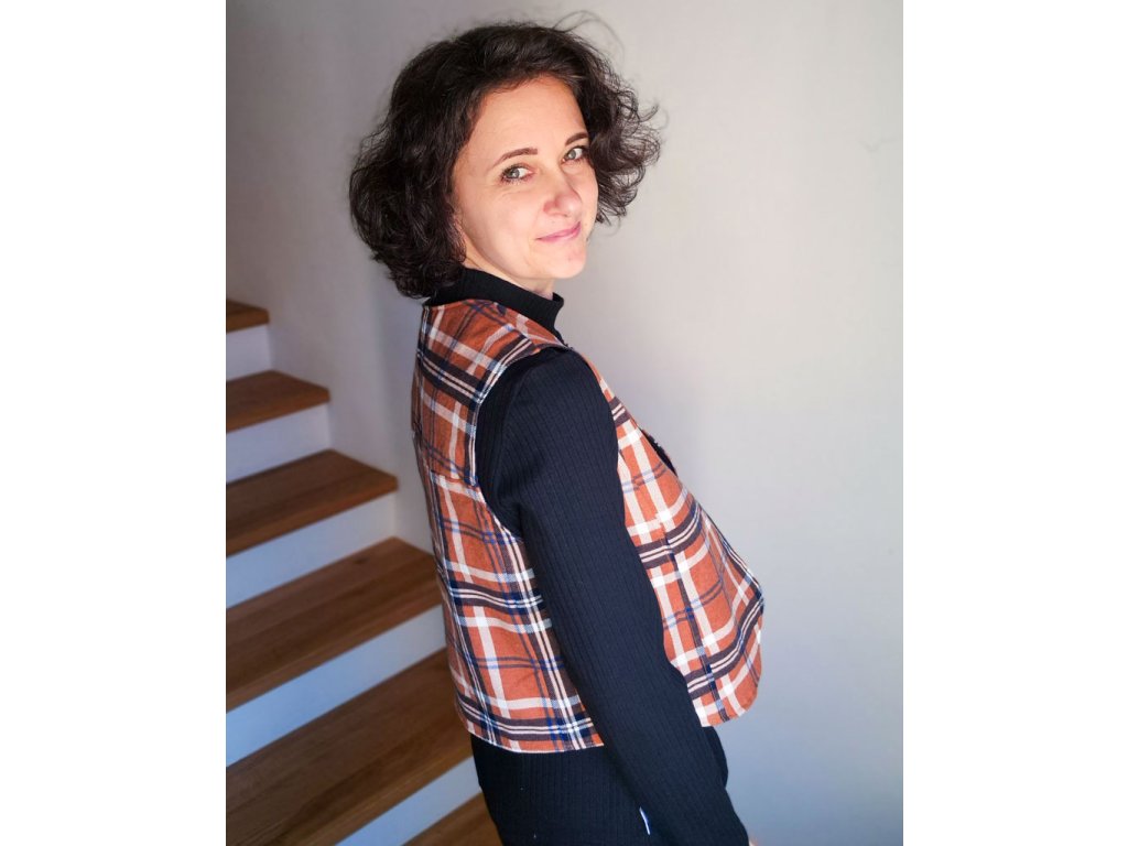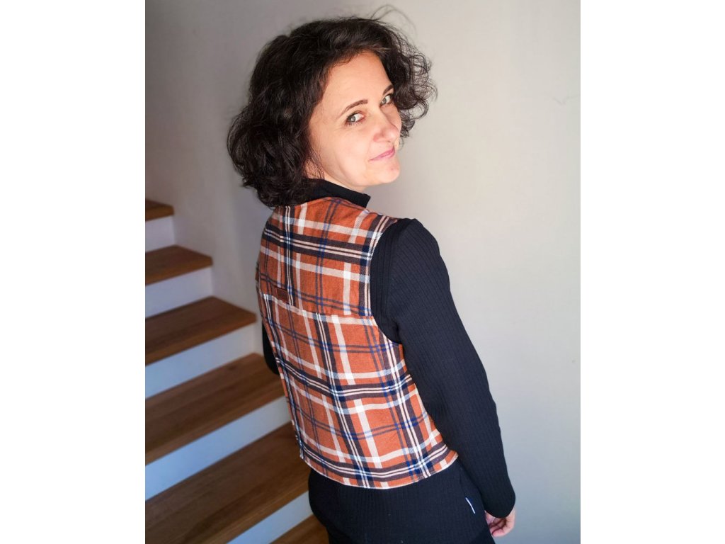 Elegantní vesta, která díky svému střihu působí nadčasově a snadno se kombinuje. Je ušitá z příjemného bavlněného flanelu, který je příjemný a nedráždí pokožku. Přední díl je střižený do obloučku, takže působí elegantně ale zároveň i ležérně.