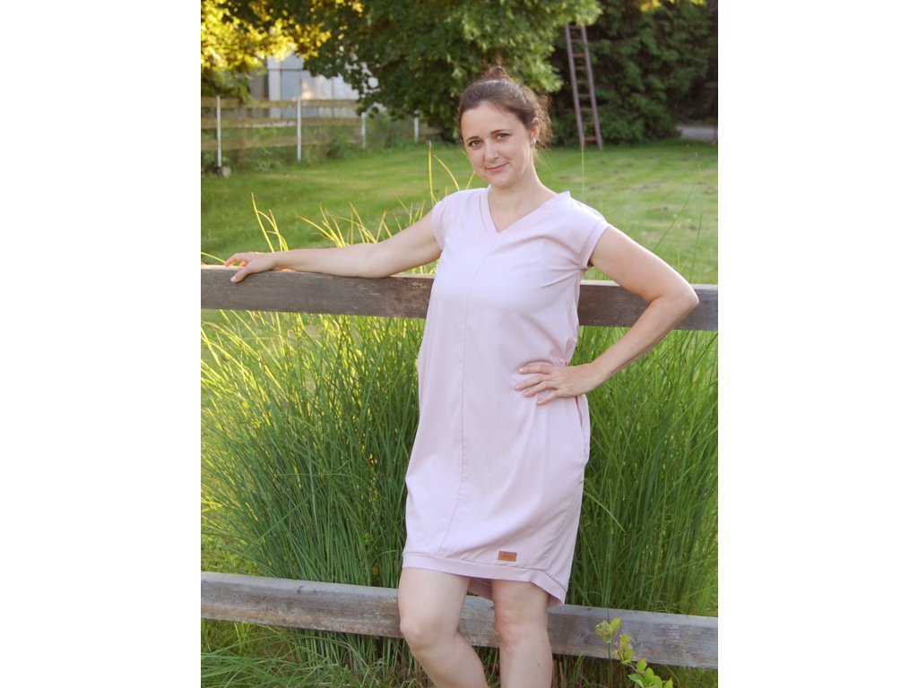 Dámské šaty ušité ze strečové viskózy jsou ideální volbou pro letní období. Lehký, vzdušný a splývavý materiál příjemně chladí na těle a díky své pružnosti ve směru šíře se krásně přizpůsobí postavě. Šaty mají mírně prodloužený zadní díl. V boční části jsou šikovně ukryté trojúhelníkové kapsy.