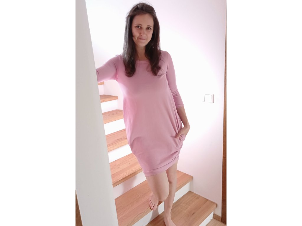 Dámské šaty s pohodlným a promyšleným střihem, který lichotí postavě a zároveň nabízí volnost pohybu. Horní část je lehce přiléhavá v oblasti hrudi a rukávů, které sahají pod loket. V oblasti boků se šaty rozšiřují do volnější siluety, což zajišťuje pohodlí při nošení i v teplejších dnech. Délka šatů končí nad koleny, takže působí svěže a moderně. Praktickým a zároveň designovým prvkem jsou dvě trojúhelníkové kapsy na bocích. Skvělá volba pro každodenní nošení i neformální příležitosti.