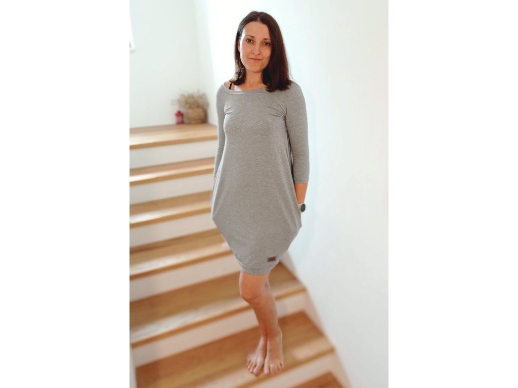 Dámské šaty s pohodlným a promyšleným střihem, který lichotí postavě a zároveň nabízí volnost pohybu. Horní část je lehce přiléhavá v oblasti hrudi a rukávů, které sahají pod loket. V oblasti boků se šaty rozšiřují do volnější siluety, což zajišťuje pohodlí při nošení i v teplejších dnech. Délka šatů končí nad koleny, takže působí svěže a moderně. Praktickým a zároveň designovým prvkem jsou dvě trojúhelníkové kapsy na bocích. Skvělá volba pro každodenní nošení i neformální příležitosti.