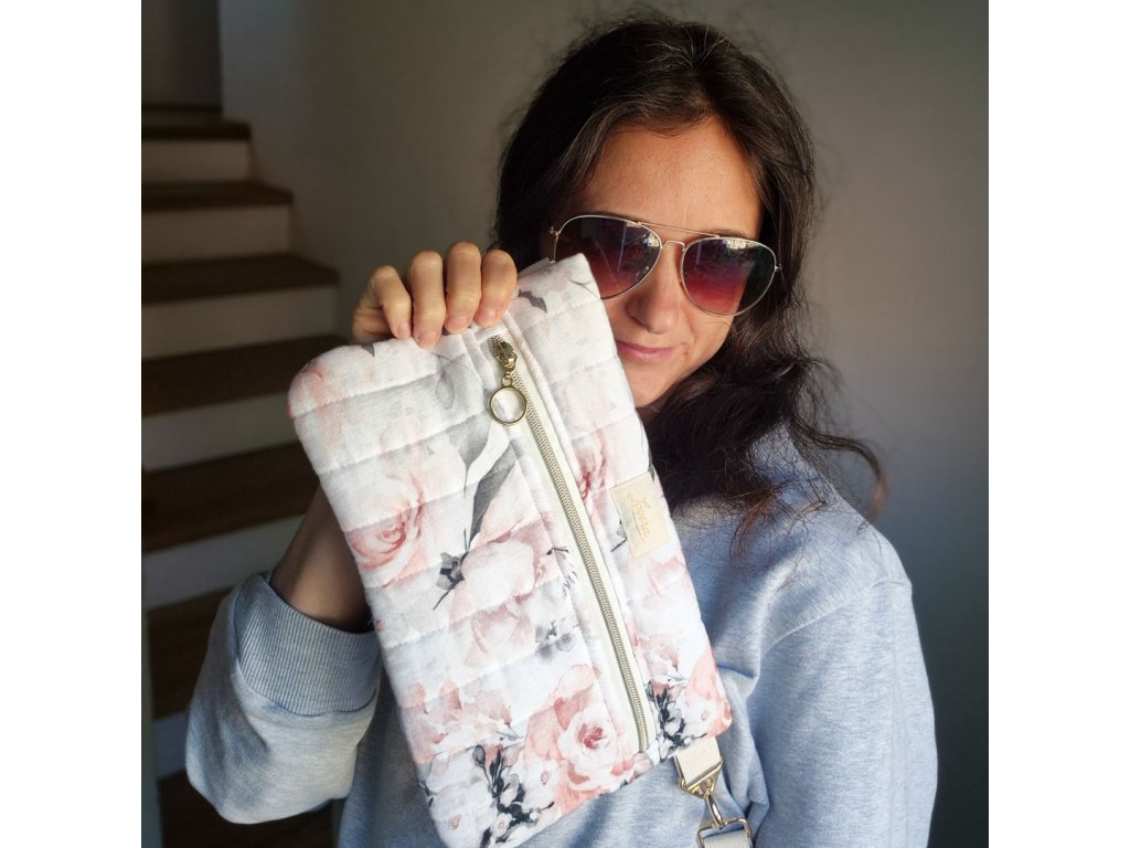 Designová taška crossbody prošívaný mušelín Květy