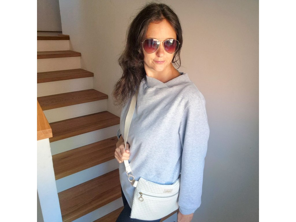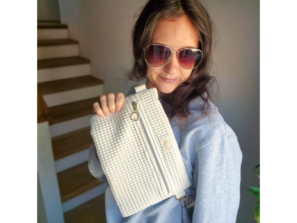 Crossbody taška ušitá z jemně strukturované vaflové tkaniny je lehká, praktická a zároveň elegantní. Vnitřek je podšitý vzorovanou látkou, která ladí s celkovým stylem. Nastavitelný bavlněný popruh se zlatými komponenty lze pomocí karabinek jednoduše odepnout – taštičku tak můžete nosit přes rameno nebo ji využít samostatně třeba na cestách jako kosmetickou. Díky čistému tvaru a funkčnímu provedení se stane univerzálním doplňkem pro každý den.