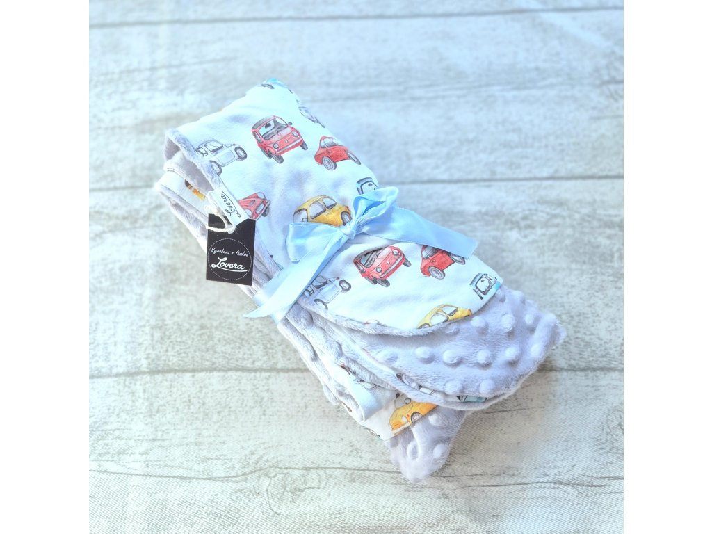 Dětská deka je ušitá z úpletu a minky. Je vhodná na přikrytí do kočárku, ale i postýlky. Ideální na období od jara do podzimu.