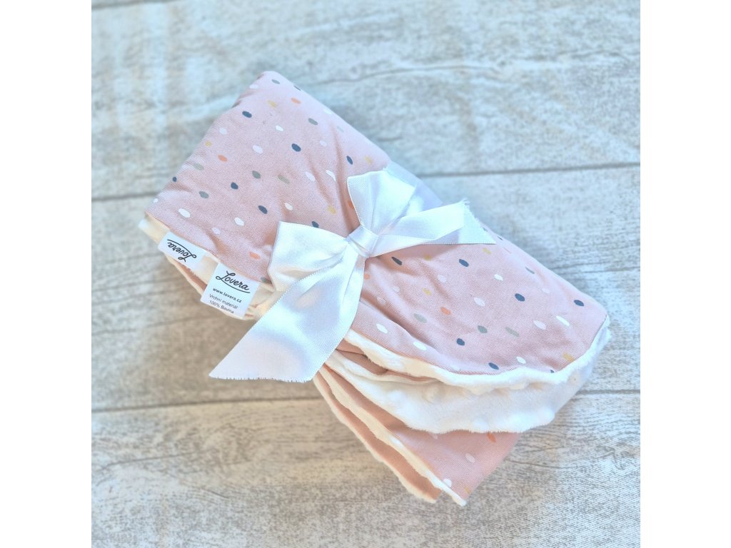 Dětská deka je ušitá z úpletu a minky. Je vhodná na přikrytí do kočárku, ale i postýlky. Ideální na období od jara do podzimu.