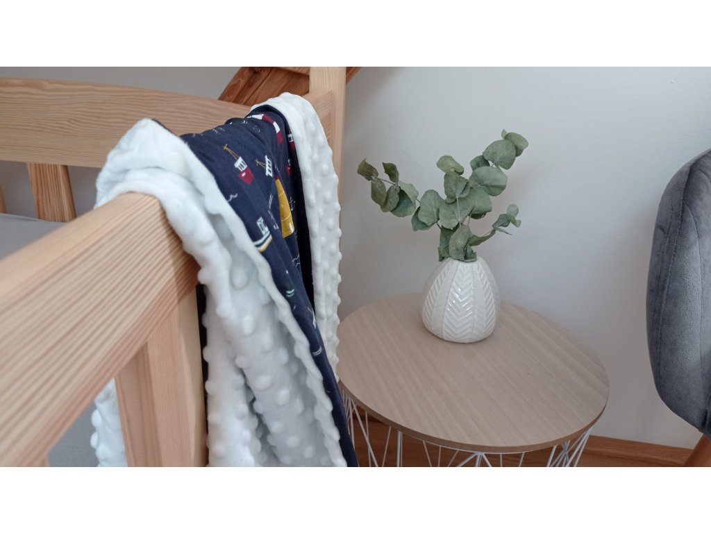 Dětská deka je ušitá z úpletu a minky. Je vhodná na přikrytí do kočárku, ale i postýlky. Ideální na období od jara do podzimu.