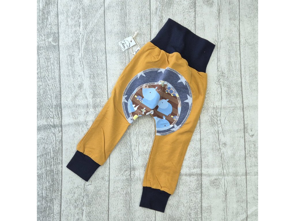 Dětské tepláky zadečky Hořčicové nosorožci 74/80