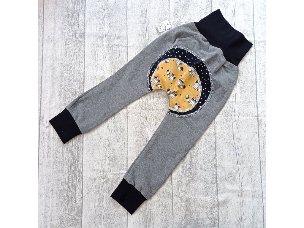 Tip: Od zákaznic i ze svých zkušeností vím, že mé tepláčky vydrží i rozmezí 3 až 4 velikostí, ale protože děti rostou různě, uvádím pouze dvojvelikost.