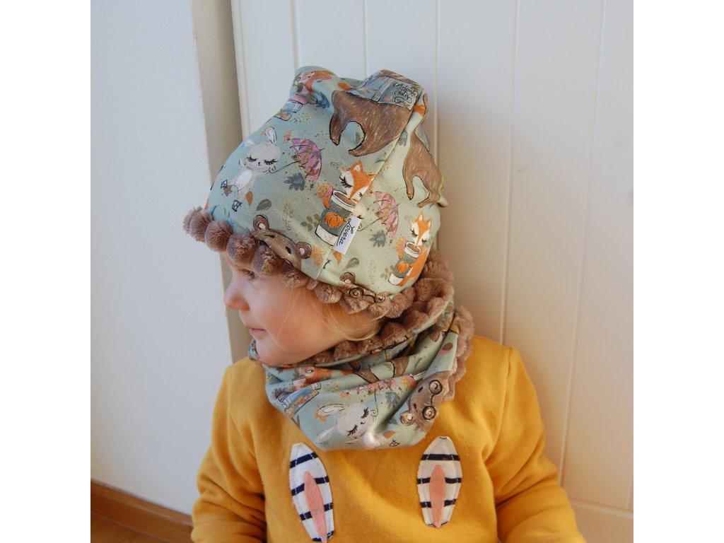 Pohodlný nákrčník ušitý z teplákoviny a vnitřní vrstva minky. Dvojité provedení zajišťuje větší tepelný komfort a chrání před větrem – ideální na podzimní až jarní období.