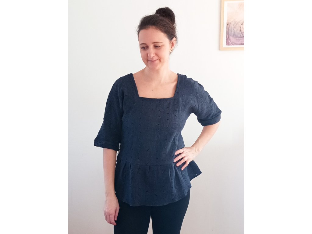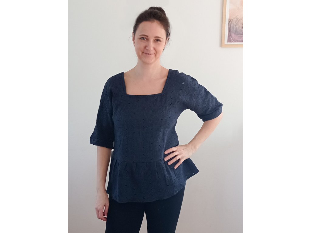 Lehká jako vánek, měkoučká na dotek – tato halenka z přírodní vyšívané dvojité gázoviny je ztělesněním romantiky. Výstřih ve výraznějším tvaru U krásně rámuje dekolt a působí jemně ženským dojmem. Pod prsy přechází do volně nařasené, mírně rozšířené části, která připomíná drobnou sukýnku – lichotí siluetě a zároveň skryje to, co má zůstat jen tvým tajemstvím. Volnější 3/4 rukávy zajišťují pohodlí i ležérní styl. Skvěle se hodí k lněným kalhotám, džínům i maxi sukním – ať už míříš do města nebo na piknik mezi květy.