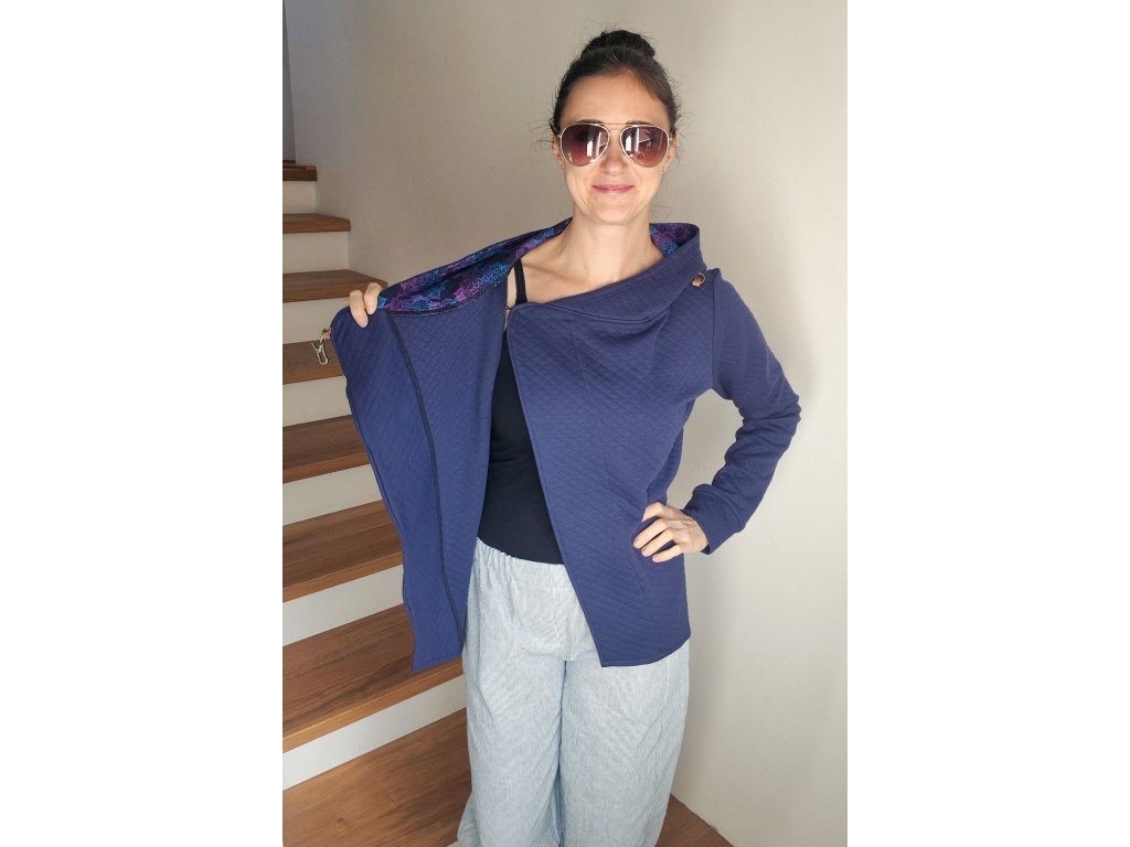 Stylový a pohodlný dámský kabátek z měkké prošívané teplákoviny, který spojuje komfort mikiny a eleganci kabátu.