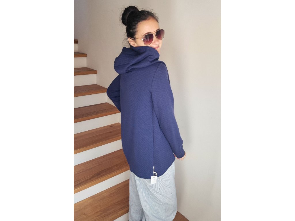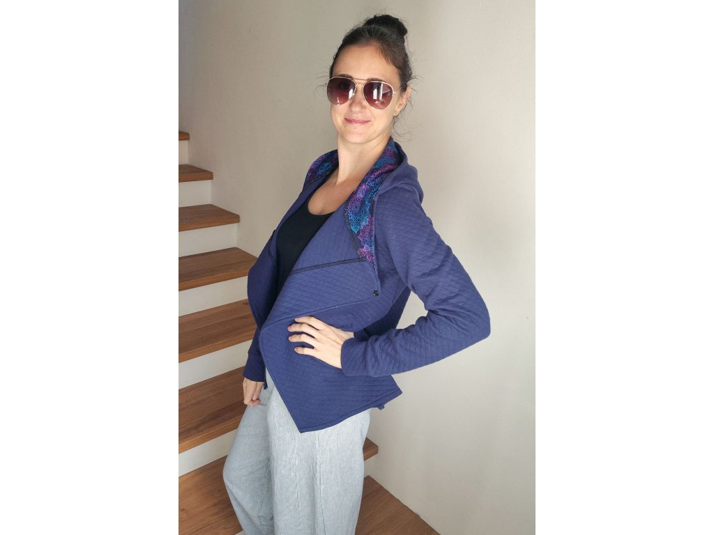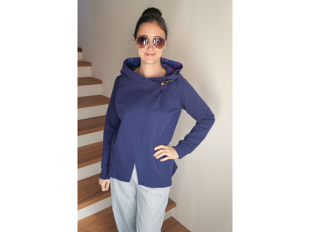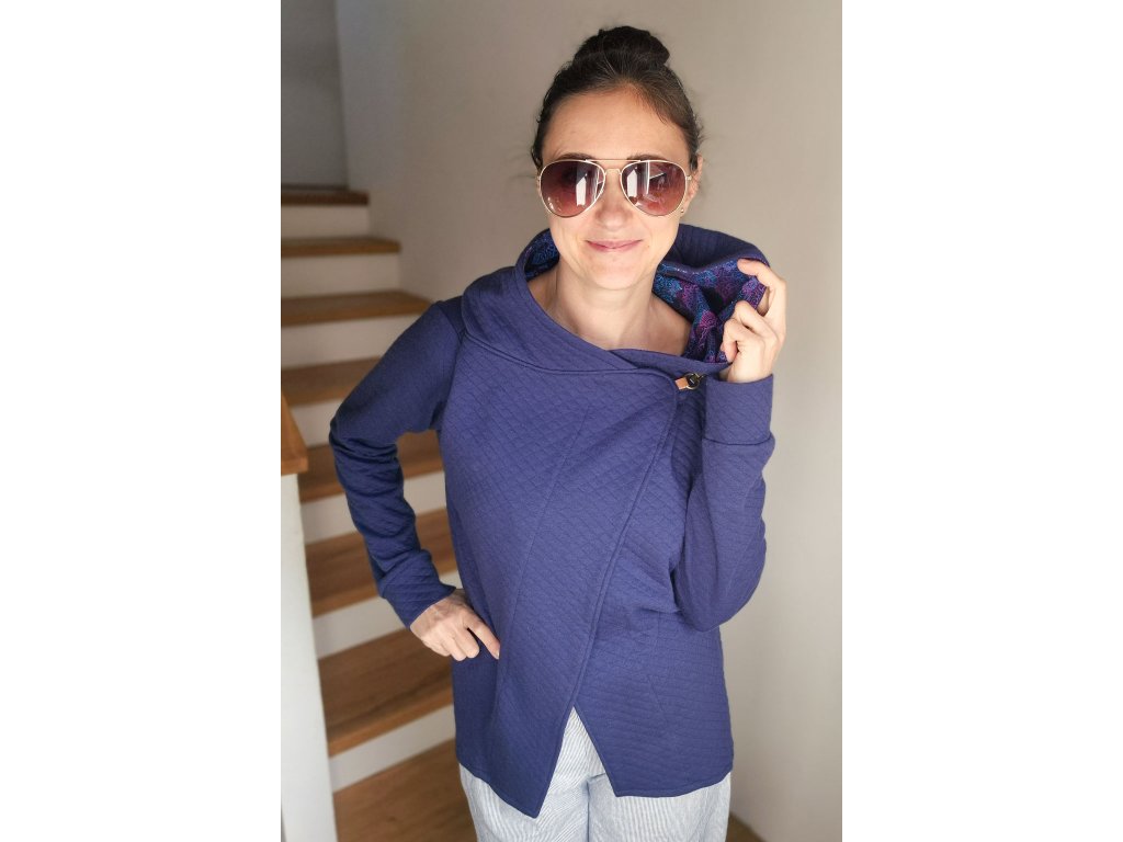 Stylový a pohodlný dámský kabátek z měkké prošívané teplákoviny, který spojuje komfort mikiny a eleganci kabátu. Má asymetrický střih, který lichotí postavě a dodává celkovému vzhledu moderní šmrnc.