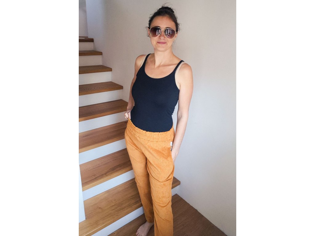 Kalhoty Tymián manšestr hořčicové