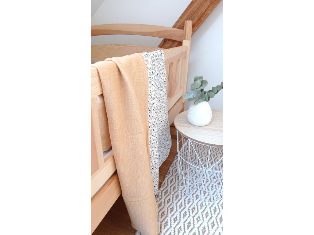 - dečku z mušelínu a designového úpletu v rozměru cca 70 x 90 cm