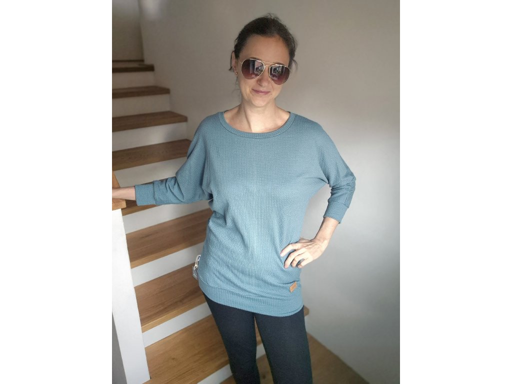 Elegantní tričko s netopýřími rukávy z příjemného prošívaného úpletu. Volnější střih a příjemný materiál zajišťují pohodlí. Díky elegantnímu střihu využijete na pracovní i osobní schůzky, či běžné nošení.