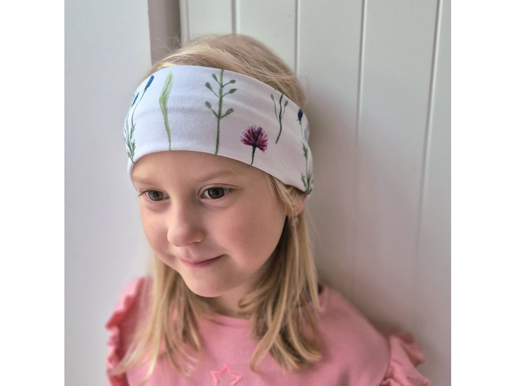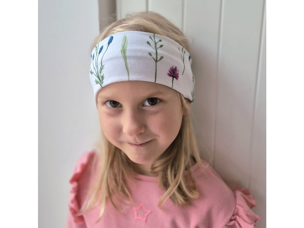 Hravá univerzálnost pro každého: Navrhla jsem střih, který je díky své elasticitě univerzální pro děti i dospělé. Čelenka skvěle drží neposedné vlasy mimo obličej, ať už jste na procházce v přírodě, nebo ladíte městský outfit. Hravý rostlinný vzor dodá vašemu dni punc radosti a lehkosti.