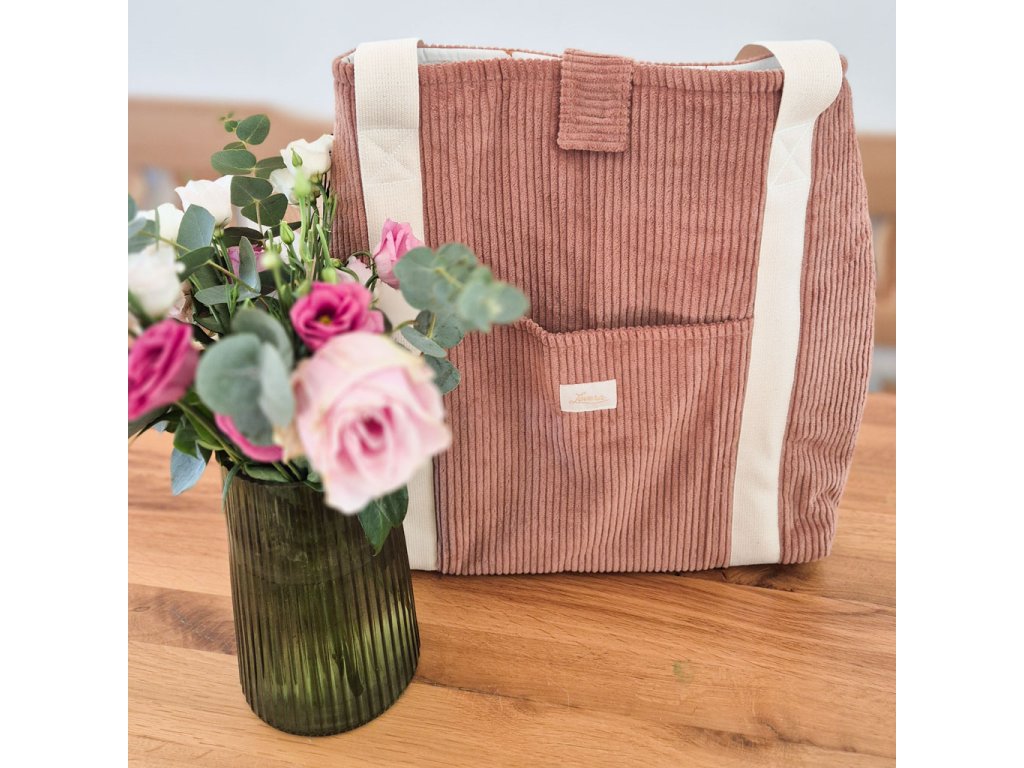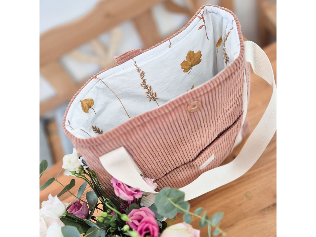 Designová taška ušitá z hebkého manšestru se stane praktickým doplňkem pro každý den. Vnitřek je podšitý originální tkaninou, která dodává tašce osobitý charakter. Díky pevným bavlněným popruhům se nosí pohodlně na rameni, takže je ideální na běžné pochůzky i delší denní nošení. Taška nabízí dostatek prostoru pro všechny nezbytnosti a spojuje jednoduchý tvar s jedinečným designem.