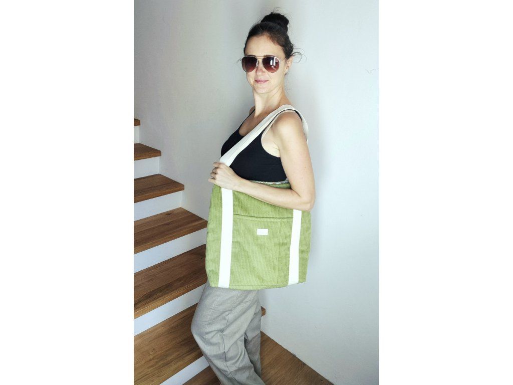 Designová taška ušitá z hebkého manšestru se stane praktickým doplňkem pro každý den. Vnitřek je podšitý originální tkaninou, která dodává tašce osobitý charakter. Díky pevným bavlněným popruhům se nosí pohodlně na rameni, takže je ideální na běžné pochůzky i delší denní nošení. Taška nabízí dostatek prostoru pro všechny nezbytnosti a spojuje jednoduchý tvar s jedinečným designem.