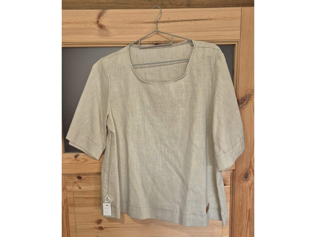 Lněná halenka je šitá ve volnějším střihu, který působí pohodlně a svěže. Díky univerzálnímu provedení padne velikostem 36 až 40. Rukávy sahají pod lokty a směrem dolů se rozšiřují, což dodává celému kousku lehkost a vzdušný charakter. Len jako přírodní materiál je příjemný na těle, dobře dýchá a s postupem času získává ještě větší měkkost.