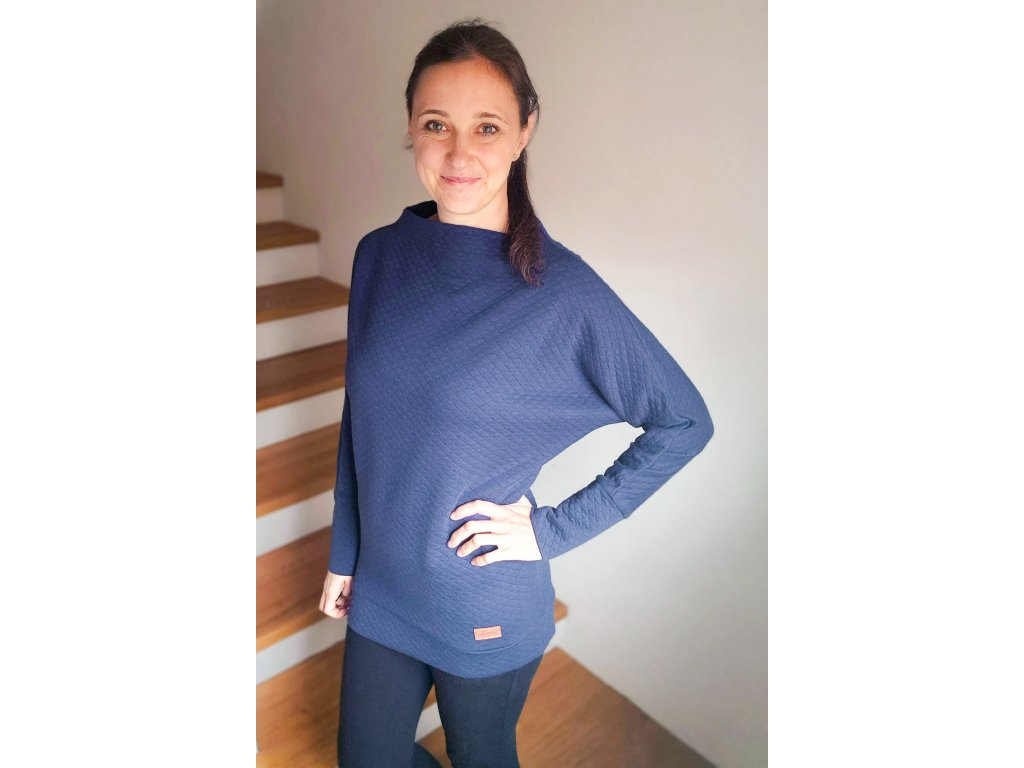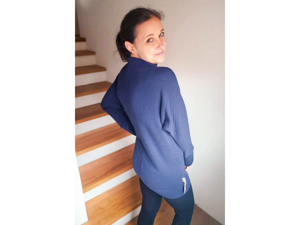 Mikina má charakteristický netopýří rukáv, který dodává volnost pohybu a zároveň vytváří elegantní a moderní siluetu. Rukáv je dostatečně dlouhý a díky lemu je možné jeho délku korigovat. Stojáček je zpracován bez viditelných stehů, což zajišťuje maximální komfort a čistý minimalistický vzhled. Mikina má delší střih a zadní díl je mírně prodloužený, takže vás krásně zahřeje i v zadních partiích a je možné ji tak kombinovat s pohodlnými legínami.
