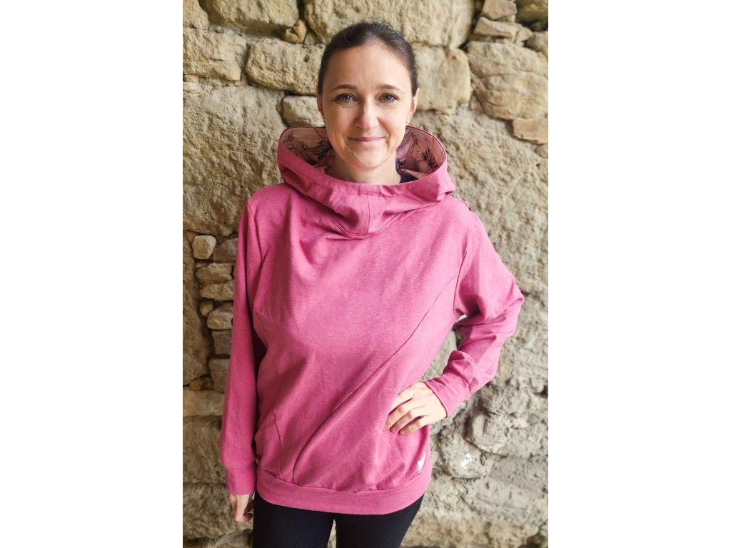 Svěží detail: Kapuce s vnitřní stranou z pastelových puntíků dodává mikině jemnost a ženskost. Je to malý důkaz ruční práce, který dělá velký rozdíl.