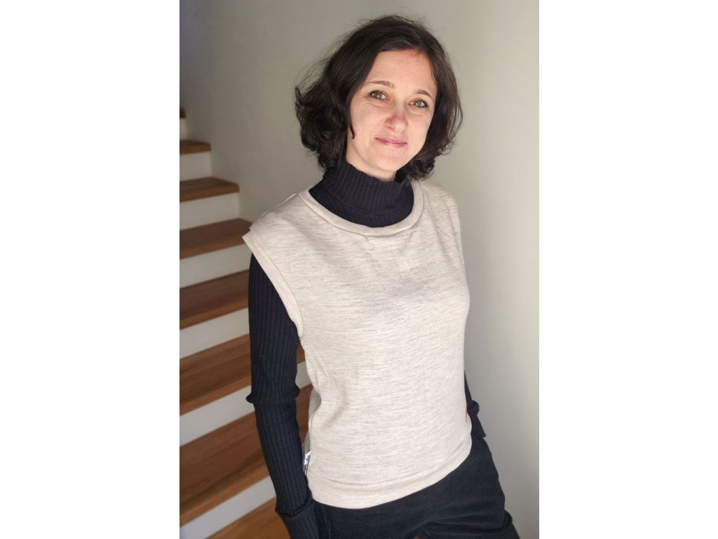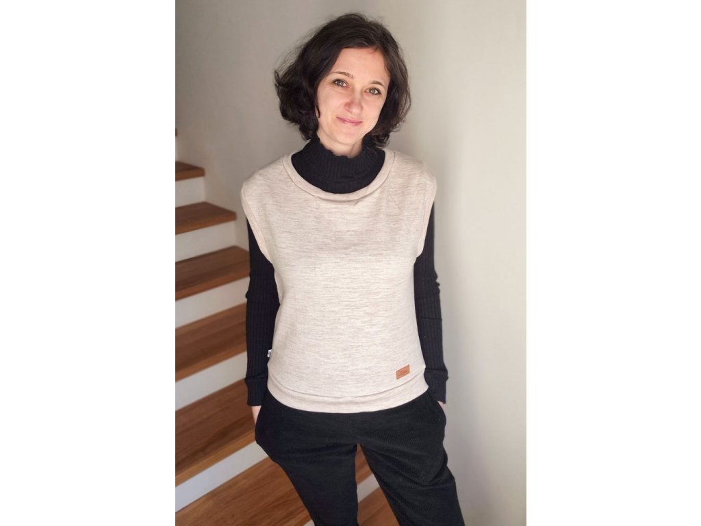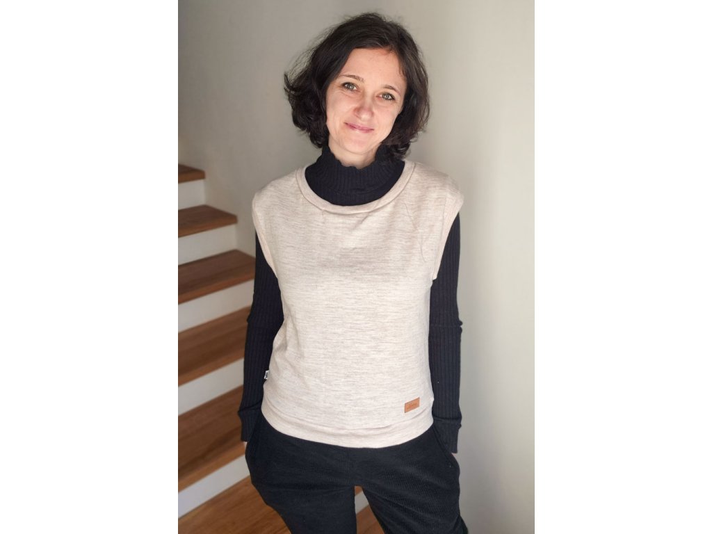 Jednoduchá vesta se snadno kombinuje s tričkem s dlouhým i krátkým rukávem, rolákem. Je ušitá z příjemného merino úpletu, který krásně zahřeje a nedráždí pokožku.
