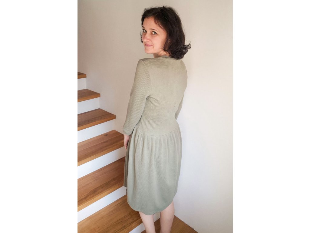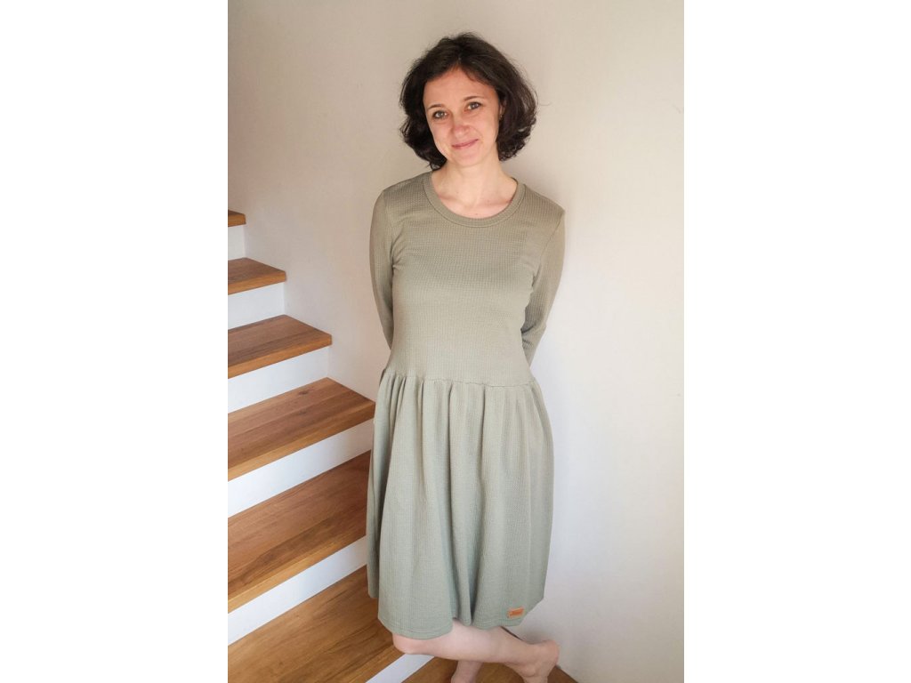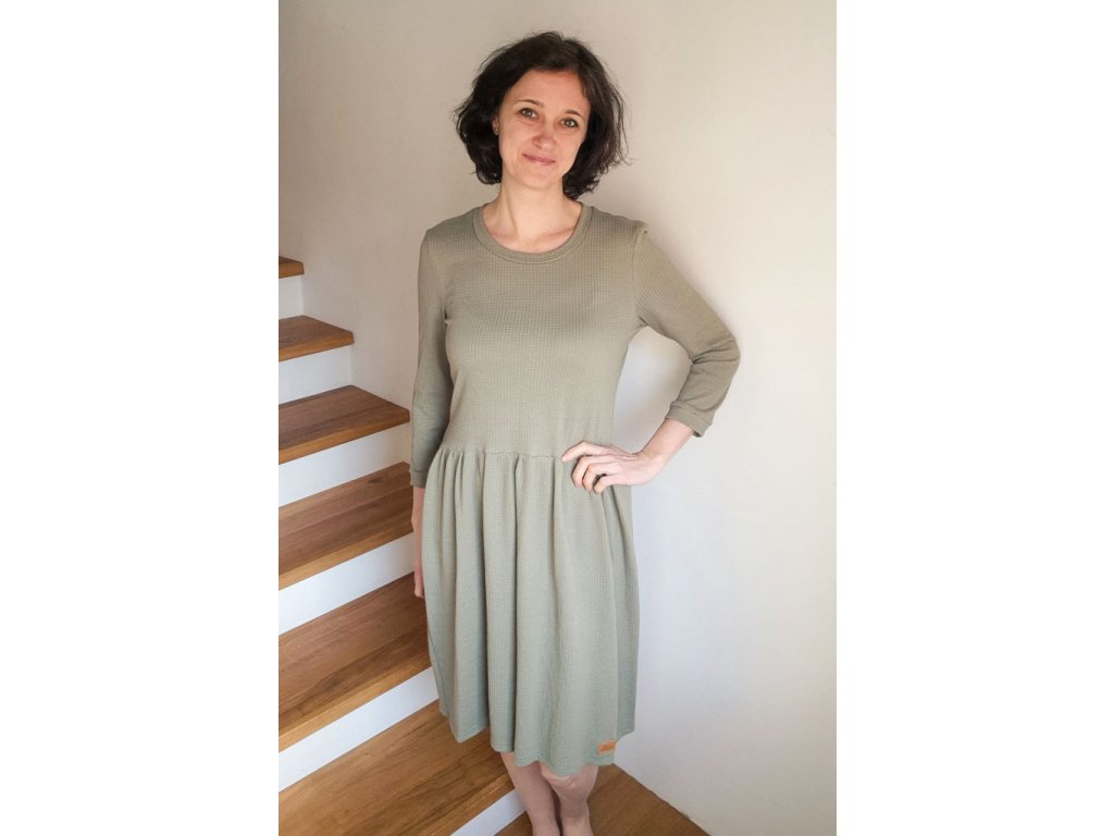Tyto dámské šaty z prošívaného úpletu spojují jednoduchost, pohodlí a nadčasový styl. Pružný materiál se krásně přizpůsobí postavě, je příjemný na dotek a díky tříčtvrtečním rukávům jsou šaty ideální pro celoroční nošení.