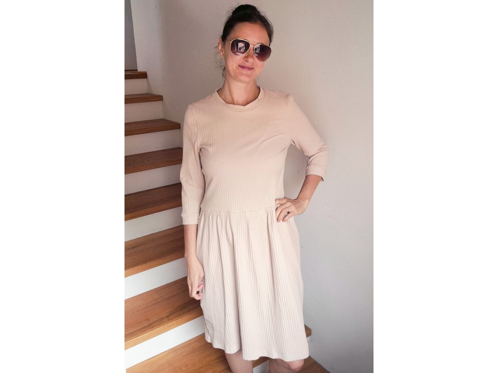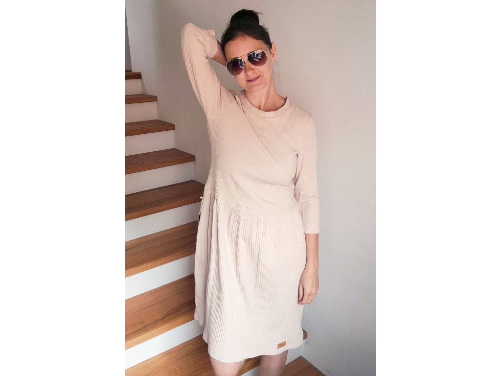 Dámské šaty Měsíček žebrovaný úplet béžový