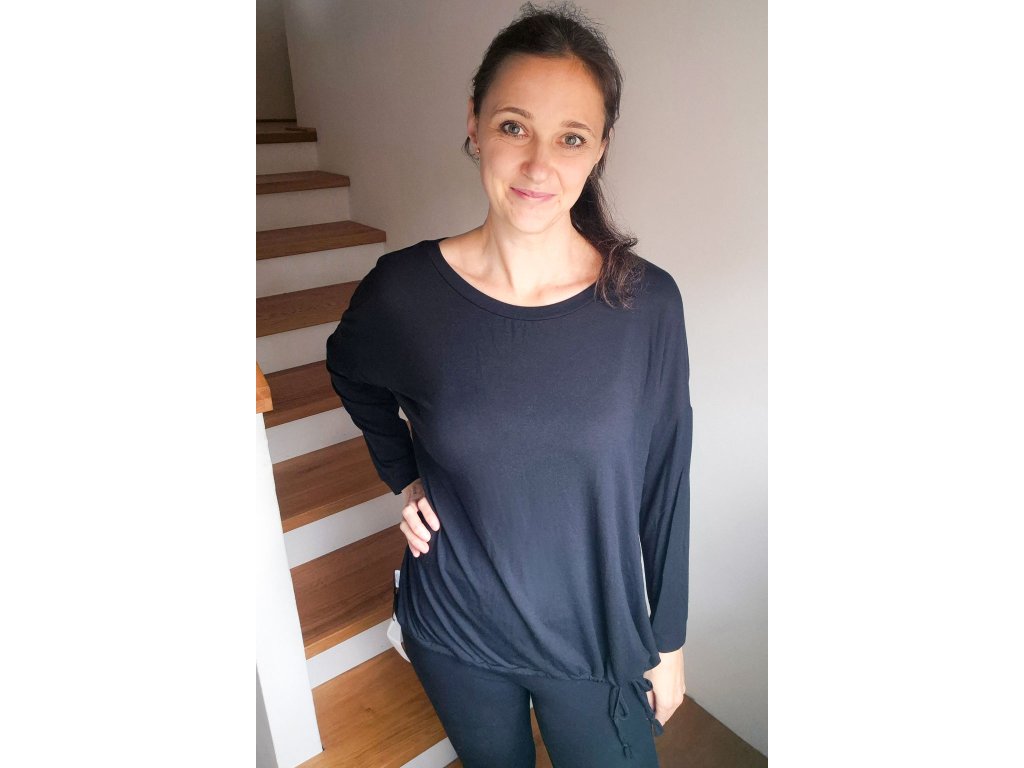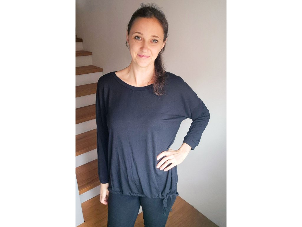 Elegantní tričko s netopýřími rukávy z příjemného lyocell úpletu. Volnější splývavý střih a příjemný materiál zajišťují pohodlí. V dolním lemu je šňůrka na stažení.  Díky elegantnímu střihu a materiálu využijete na pracovní i osobní schůzky, či běžné nošení.