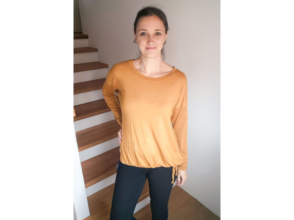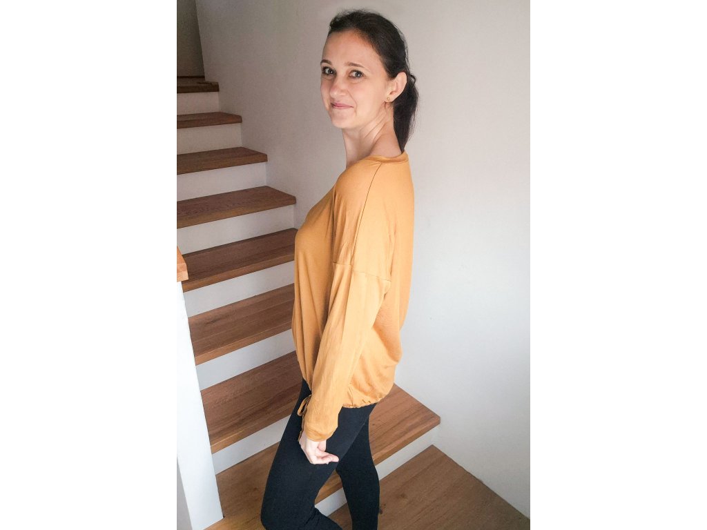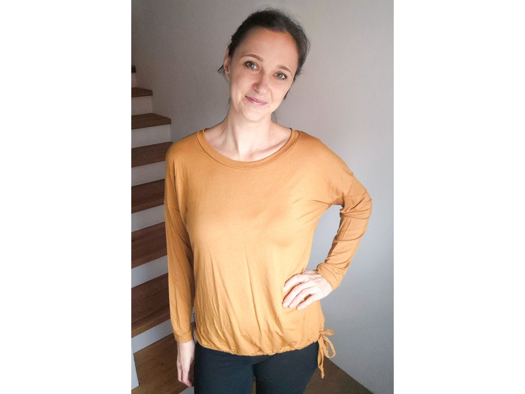 Elegantní tričko s netopýřími rukávy z příjemného lyocell úpletu. Volnější splývavý střih a příjemný materiál zajišťují pohodlí. V dolním lemu je šňůrka na stažení. Díky elegantnímu střihu a materiálu využijete na pracovní i osobní schůzky, či běžné nošení.