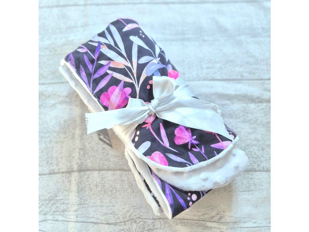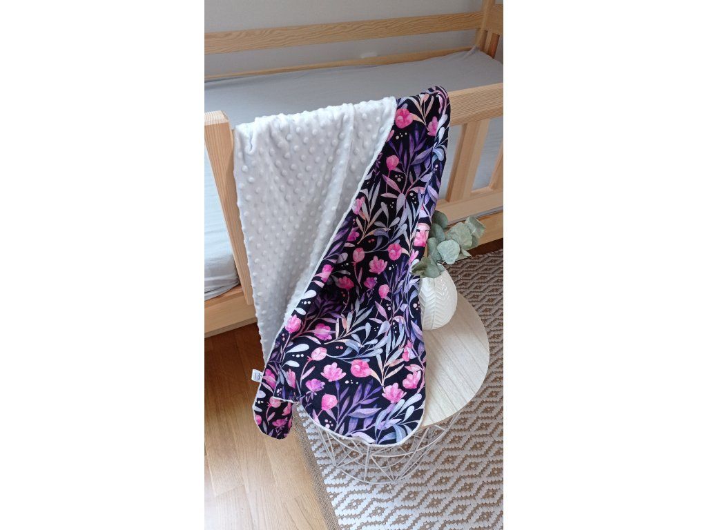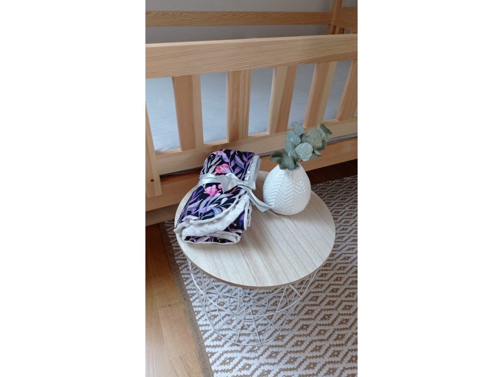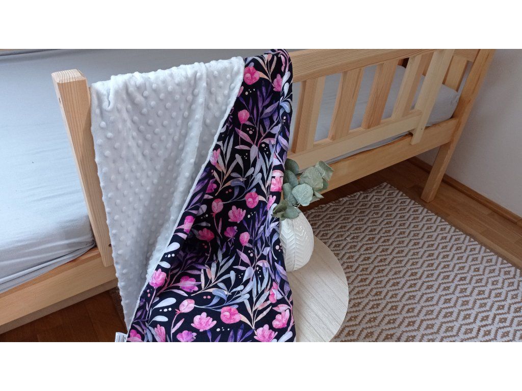 Dětská deka je ušitá z úpletu a minky. Je vhodná na přikrytí do kočárku, ale i postýlky. Ideální na období od jara do podzimu.